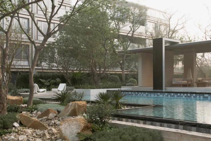 设计以东方美学为主调,自然元素与建筑形式的有序交织,彰显出一种内敛而深远的美学意境。把更东方的生活方式在花园间得到了巧妙的跨界融合。设计不再局限于单一的空间体验,而是打破传统界限,将庭院、公共空间、私密区域与自然景观融为一体。