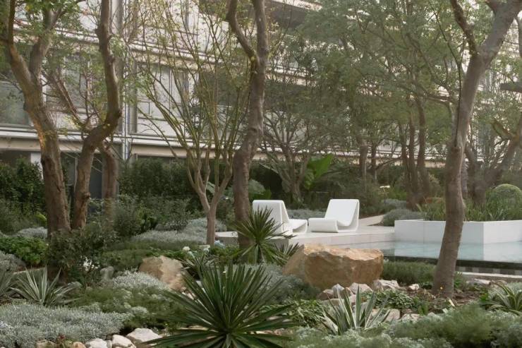 以丰富的细节包容无尽的山林之美,植物的搭配、石材的选择、雕塑与艺术品的配置,都经过精心雕琢与挑选。与山林、野地之美共振,慢慢流淌。