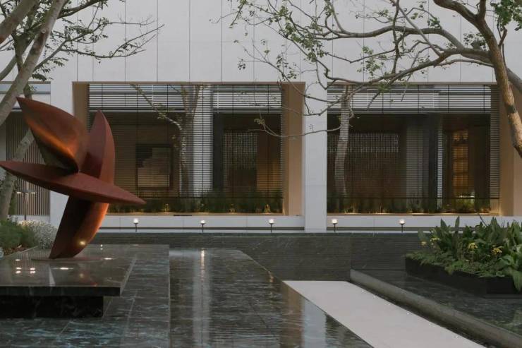 在立面、细节、材质以及植物的布局上进行匠心雕琢,还通过空间结构的巧妙设计,创造出一个层次丰富的景观美学空间。线条、材质、对景,让人在行进之中体会到静谧中高雅、永恒的美感。