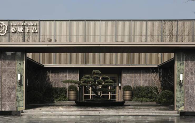 半围合的景墙自然限定了空间的层次:前场的归家庭院定义第一重归家礼序,后场创造穿林体验的第二重礼序,亦作为对景小品及辅助通道。前场和后场形成了一组完整的空间场域,创造如潮奢酒店般的归家体验。