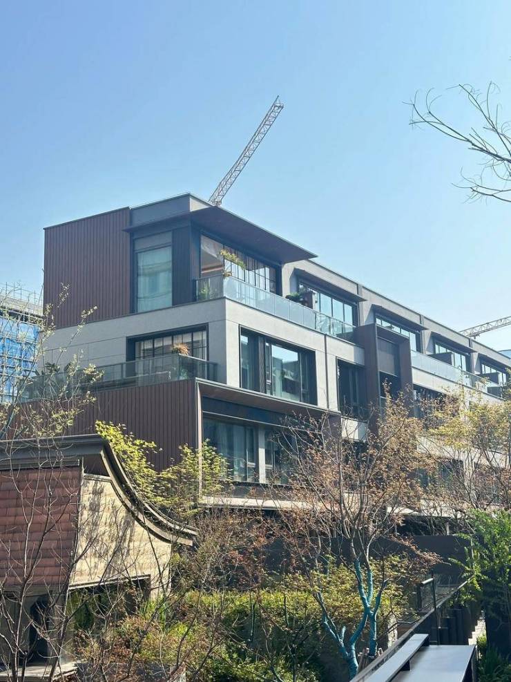建筑特色:项目三面环水,打造包含墅境洋房、联排院墅、双拼排屋等多种业态的低密住区。建筑取法绍兴漆墙瓦黛等传统元素,搭配大尺度东方飘檐与质感铝板木纹盒子结构,像建面约 275㎡的台门大宅,还有超 58% 窗墙比与约 10 米南向开间,增强采光与通透性。同时以三进制院落、泗水归庭布局等,还原绍兴高门大宅的礼序感。