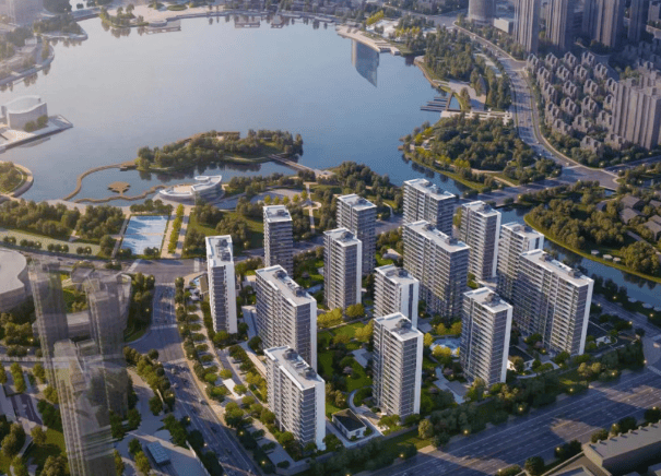休闲配套:步行 800 米直达 50 万㎡湖景的天镜湖公园,毗邻复星阿尔卑斯文旅小镇,内含滑雪场等休闲设施。