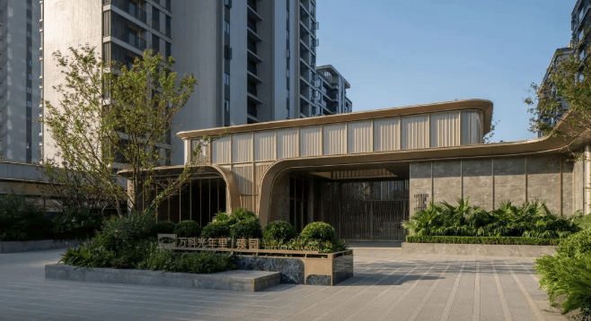 建筑风格:采用现代简约的建筑风格,外立面以浅灰色和米白色为主色调,搭配大面积玻璃幕墙,线条简洁流畅,既时尚大气,又能保证室内的采光和视野,整体呈现出轻盈通透的视觉效果。
