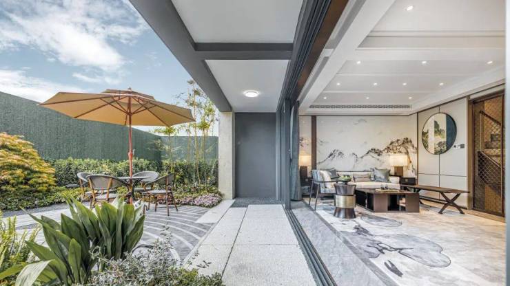 空间更通透、采光则更优越,地下南北双采光井的设计,让自然光照从庭院倾落,地下空间的氛围更加静谧与柔和,光与影跃动多元生活的韵律。