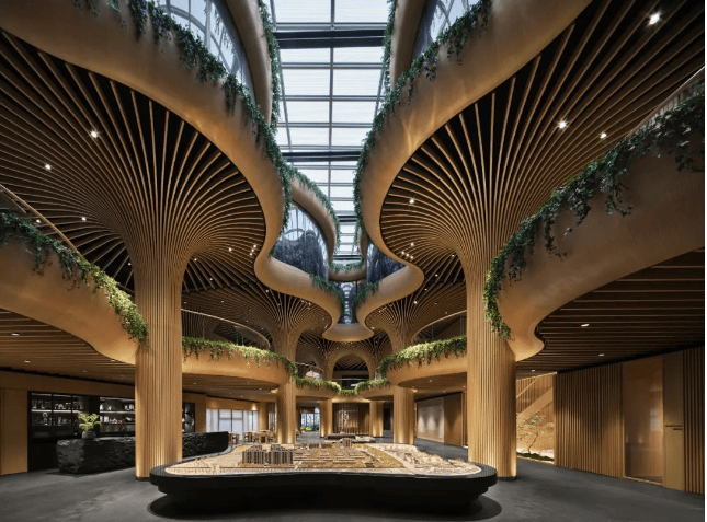 比如客厅的背景墙,在同行都纷纷上岩板时,天安1号却改变了一期的岩板,采用大面积木饰面,让整个空间更自然协调,视觉与触觉感觉都更加舒适。