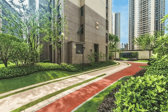 社区设计:人车分流、超大楼间距(超百米)、中央花园及全龄活动设施,提升居住舒适度。