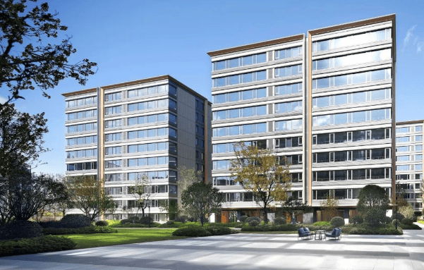 建筑设计:建筑外立面采用天然石材、一体化板材和铝型材线条,以莫兰迪湛蓝灰色调为主,呈现简约精致的视觉效果,腰线设计精巧,层次丰富,窗墙比高,拥有 IMAX 级宽境视野。