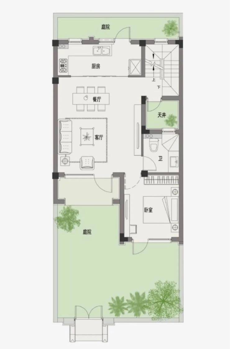 南进入户的这套样板间,就是本期的主角——约127㎡合院“竹”。