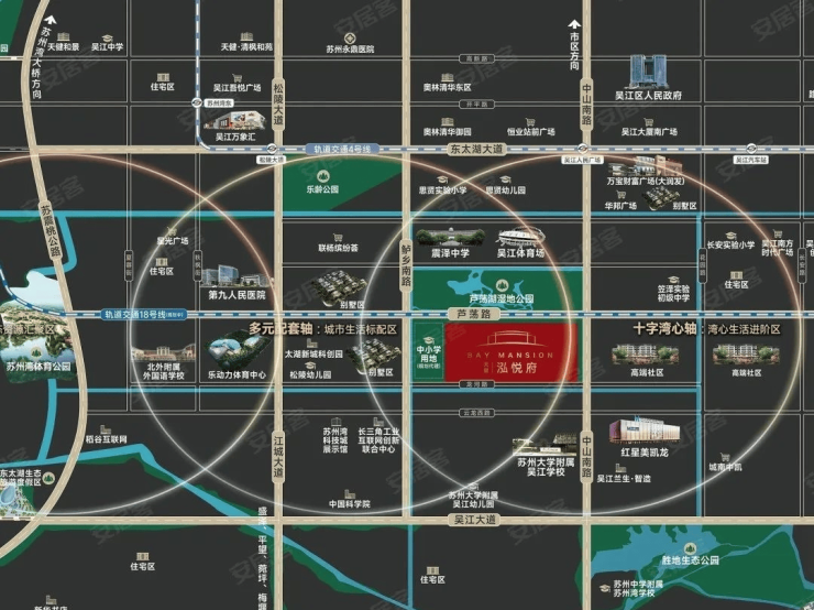 总体来说属于吴江太湖新城板块,但是更靠近核心区域,无缝衔接吴江老城区的配套。