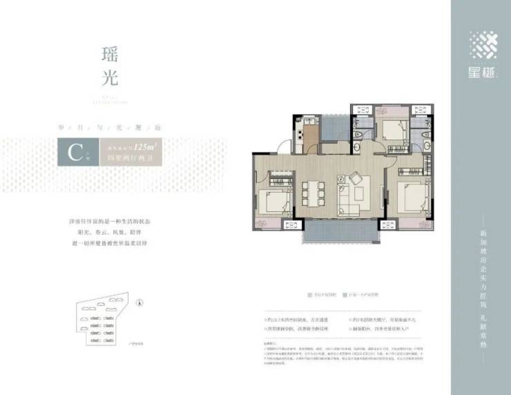 户型特色:户型设计方正,空间利用率高。如 99 平米的三房户型,主卧套房设计,舒适私密;115 平米的三房户型,三开间朝南,采光充足,约 6.9 米阔景阳台,风光自然入户;125 平米和 135 平米的四房户型,空间宽敞,适合改善型家庭居住。135 平米户型约 14.3 米四开间朝南,客餐连厅,约 6.3 米阔景阳台,美景四季相伴。