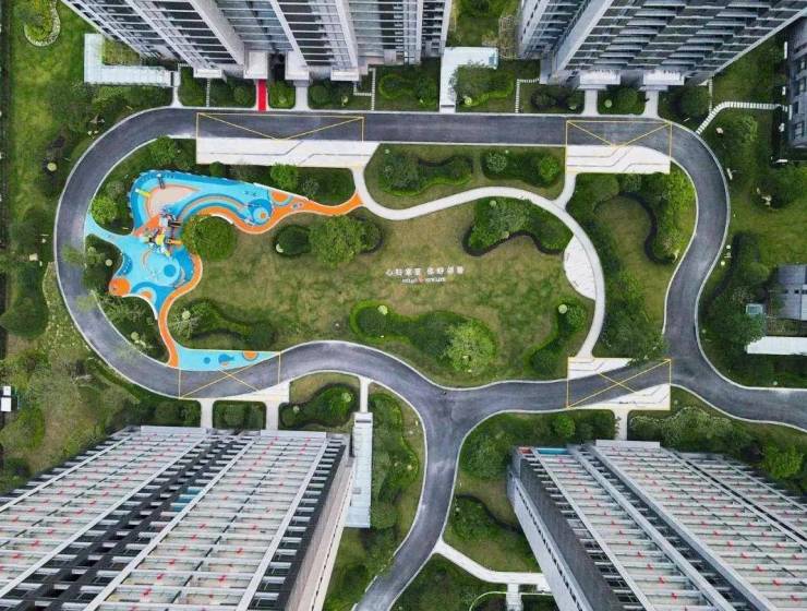 小区内有较多草坪、灌木、乔木、高大的树冠,呈现出层叠错落的体验感。