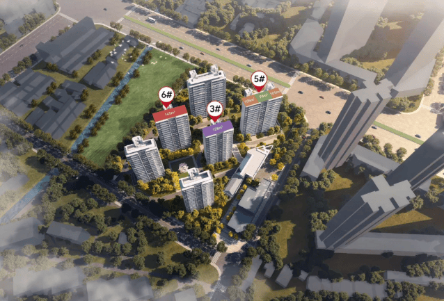 社区规划:6栋16-17F小高层科技住宅,共259户