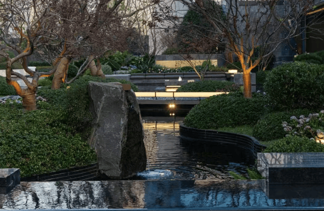 建筑设计:三启规制门庭搭配约 8 米定制非遗手工锻造锤纹紫铜威仪大门,尽显尊崇2。
