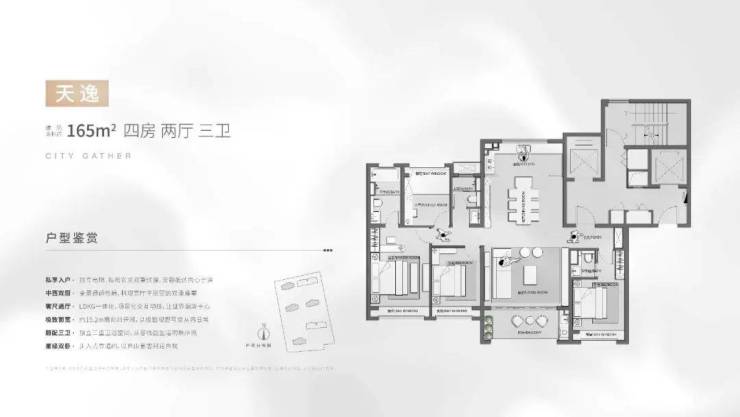 社区围绕领域私享、美学精奢、自然自在、居所定制等四大主张进行产品迭新,6幢17F纯粹小高层,谨献264席稀缺大宅,建面约147㎡/165㎡四房起步改善大户。