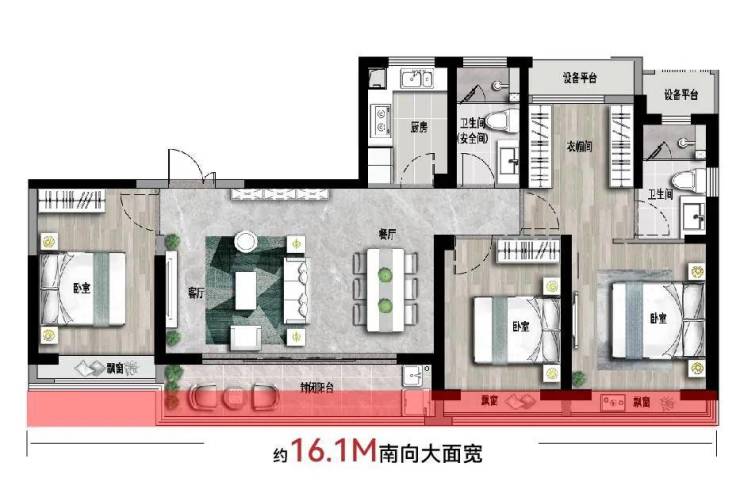 这其中,最为突出的便是建面约132m²户型,一出现就收获了极高的关注度。该户型采用罕见五开间设计,约16.1m的超大面宽,南北通透,整体十分的方正大气,可以说单从面宽而言,它就足以拥有自己的一席之地。