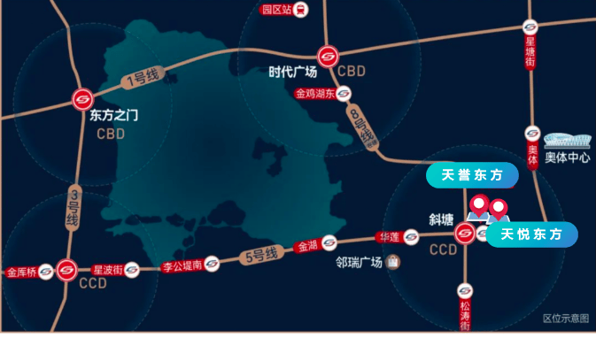 项目位于金鸡湖东岸,直线距离金鸡湖约1.5公里,属于园区核心地段,周边配套成熟,涵盖商业、教育、医疗等资源。临近地铁5号线和8号线(在建),交通便利,且与斜塘老街、奥体中心等区域紧密相连,生活氛围浓厚。