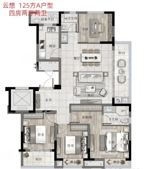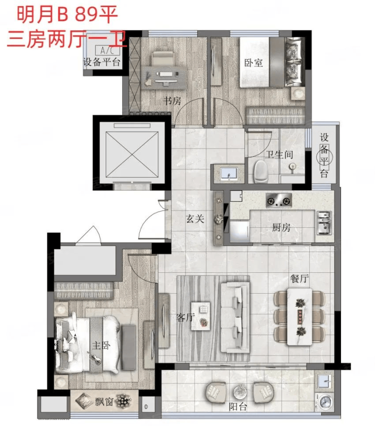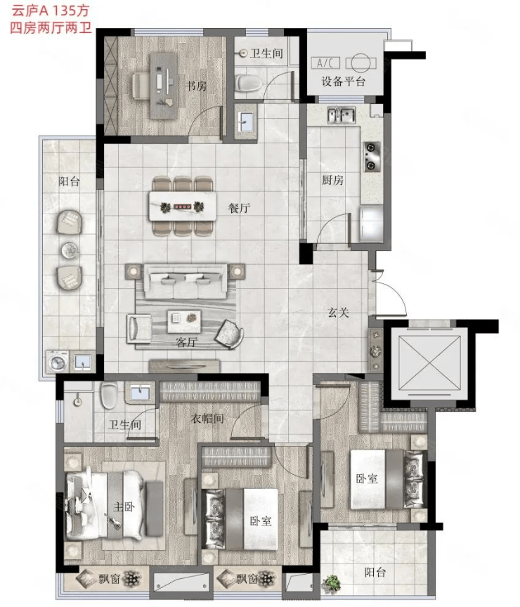 【户型面积】89-135方;改善三房四房户型