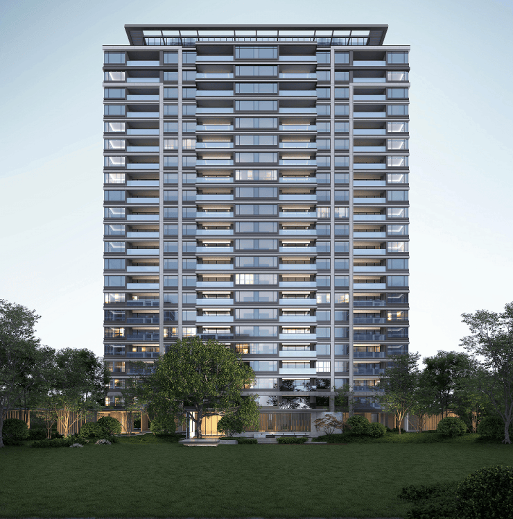 参数:占地约 2.96 万㎡,建面约 9.3 万㎡,容积率2.3,绿化率 35%;8 幢 16–26 层高层,共 553 户,车位比 1:1.25,人车分流。