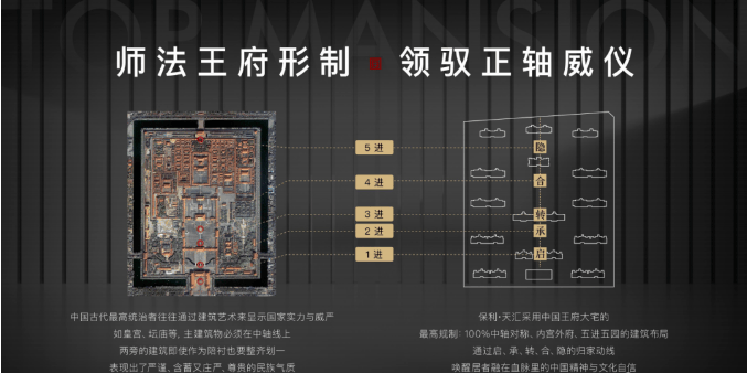 项目理念大宅规制:大宅之道,师法千年龙脉规制 中轴对称之美,复刻王府气质