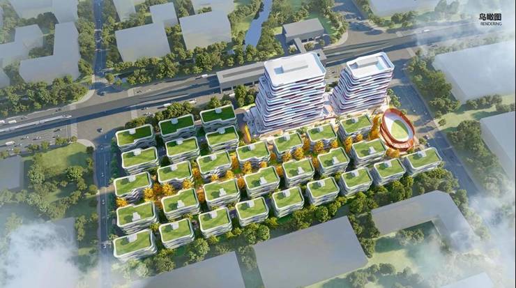 项目规模:总占地约 60 亩,总建筑面积近 12 万方,由 30 幢总部多层、2 幢高层及约 7000㎡商业配套组成。