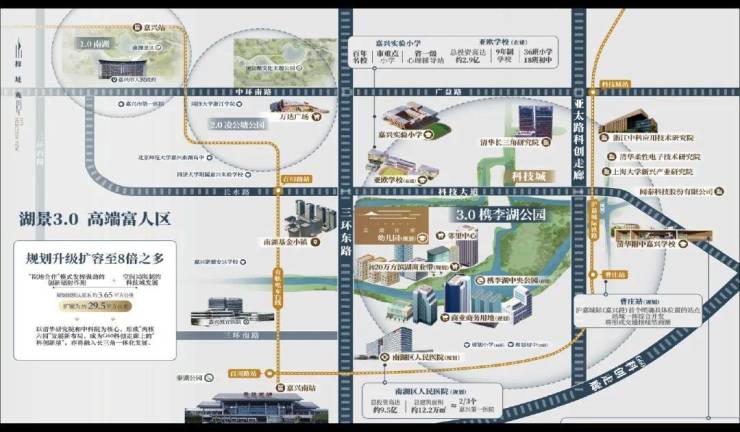 在大批品牌开发商到来之前,科技城即已规划引入了双百亿产业、清华附中、槜李湖、沪嘉城际、南湖人民医院等超一流配套。