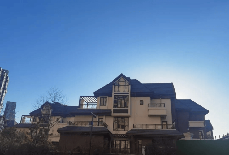 来看一下实拍图,别墅长这样:前排法式风独栋、后排英伦双拼~