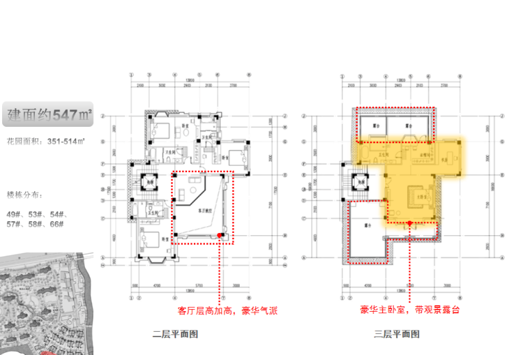 建面约547㎡独栋别墅,花园面积351-514㎡