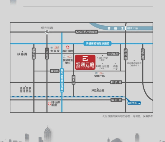 位置:位于绍兴市越城区育贤路与越王路交叉口向北 250 米,处于袍江两湖核芯区域,镜湖东与迪荡北共振地带。