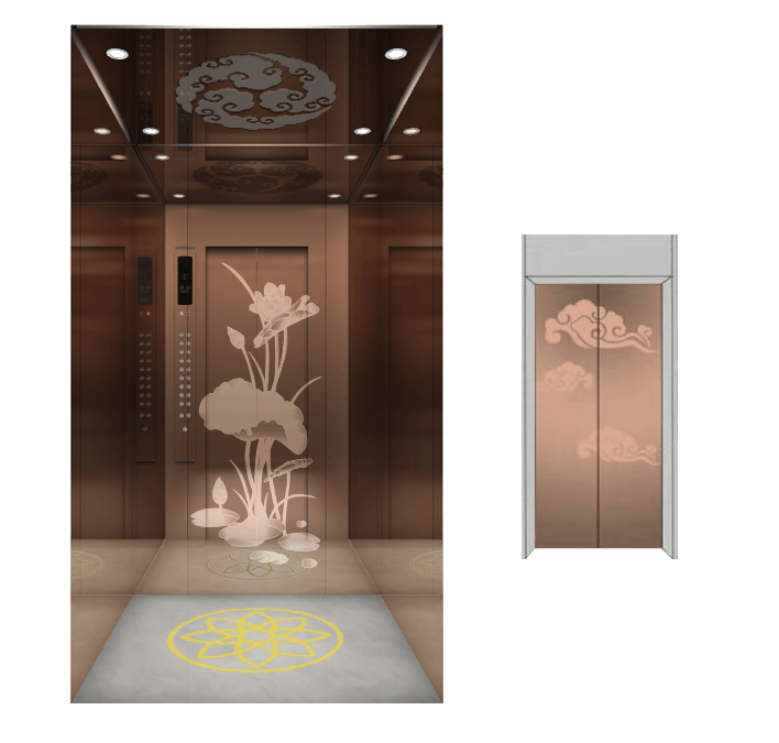 根据业主家里装修风格,伊萨电梯专门设计了一台4层4站4门400公斤的荷韵吉祥的别墅电梯。整个轿厢的装修风格选用简洁亮丽的玫瑰金镜面不锈钢加玫瑰金镜面蚀刻莲花的镜面轿厢,简洁而华贵,轿厢空间放大。轿厢拼花荷花大理石,轿顶祥云蚀刻。电梯配置ARD断电平层应急救援装置、一键呼叫功能,卧式迷你小型永磁同步主机,呈现绿色智能的别墅电梯享受。