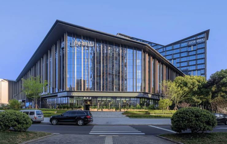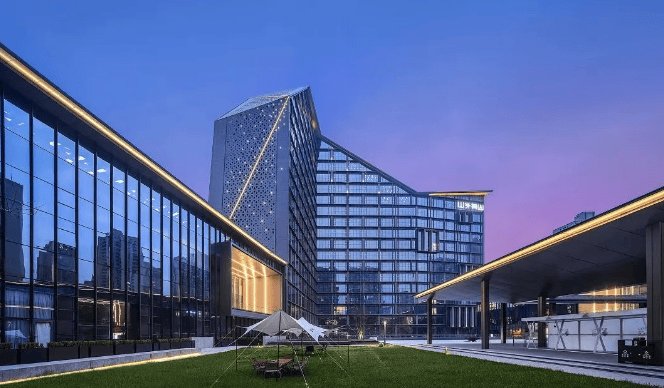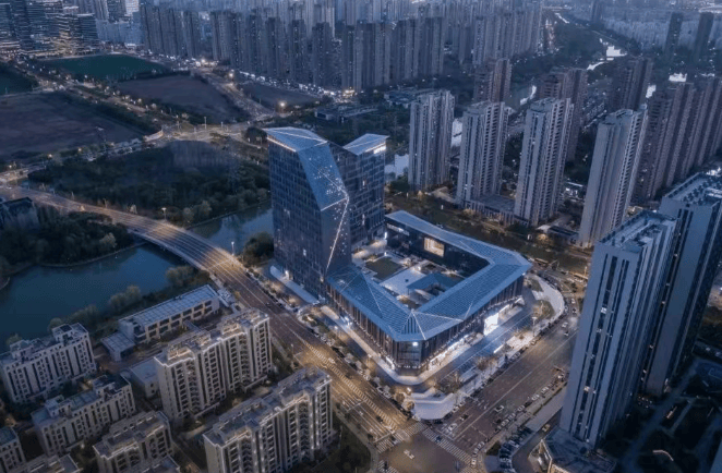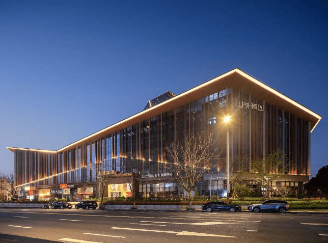 设计理念:以连绵山峦为灵感,通过起伏的天际线柔化城市轮廓,采用仿木铝板百叶模拟自然山丘,色彩渐变呼应山脉轮廓。