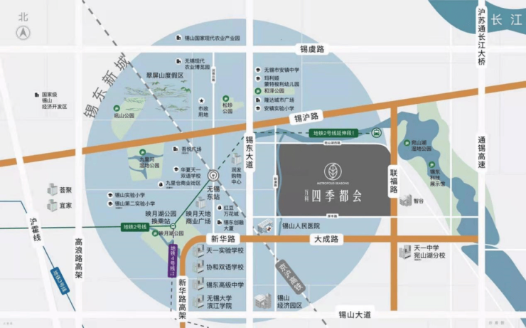 规划地铁2号线延伸段(计划2024年启动建设)紧邻地块,地块至无锡东站仅4公里左右,临近锡沪路与新华路高架,至锡张高速道口2.5公里左右