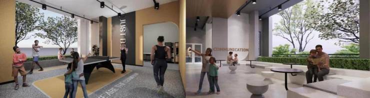 · 全架空层设计下,自主学习空间、社区图书角、主题乐园、儿童植物博物馆、周末共享集市等功能空间,被有序分配在不同楼栋的架空层内;