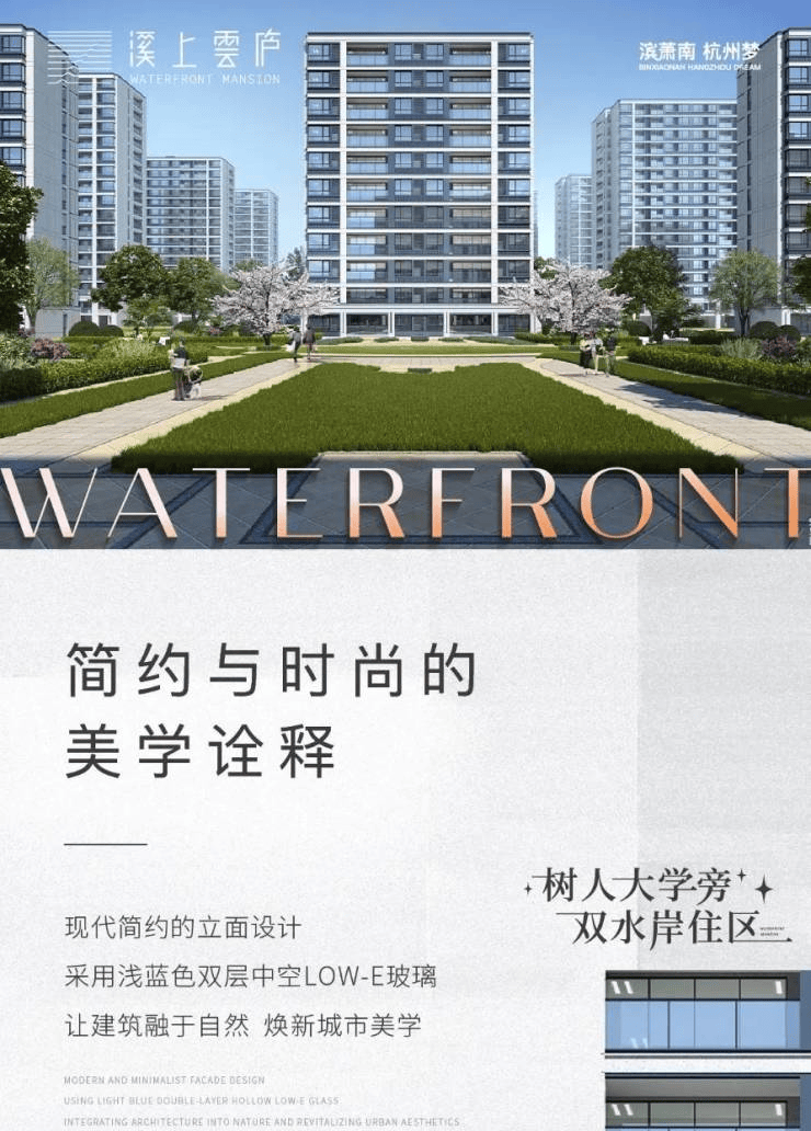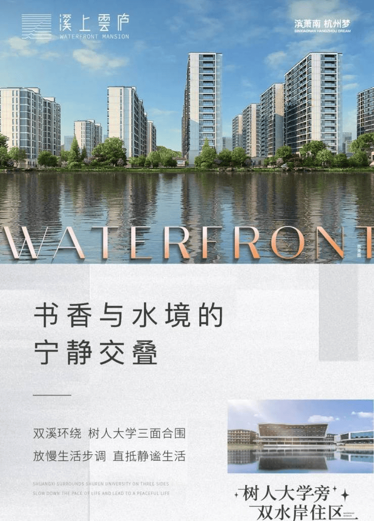 谈及城市的稀缺资源,河流与高校一定必不可少。溪上云庐先天资源禀赋优越,东西两侧溪水环绕,树人大学三面合围。优居于此,可以驻足河边,沉淀浮躁的身心,也能漫步校园,追忆似水年华的活力美好。