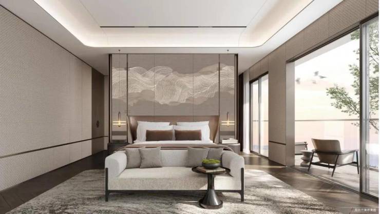 二层卧室可变式套房设计,赋予更多的私密与灵活性。约4.5m面宽奢阔主卧,搭配独立卫浴。同时,南向全落地玻璃窗与约7.1米双阳台,形成270°环幕视野。躺在卧室,一抬眼,就可以直面一线湖山。