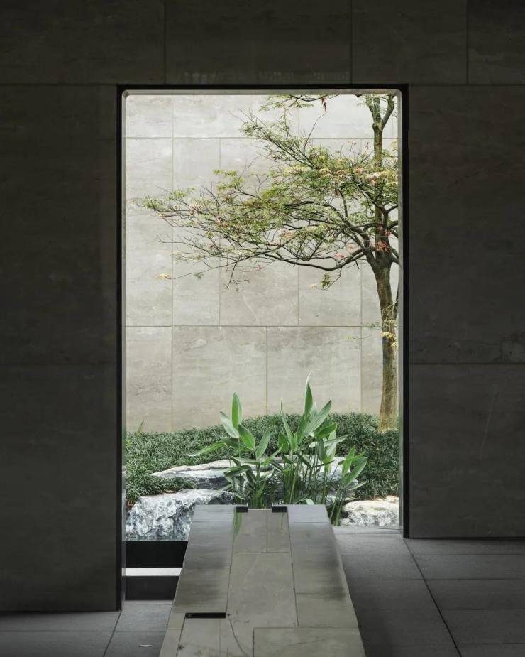 场地被组织成四进式递进空间,用景观场景叙事的游园手法将建筑、室内、景观串联起来。