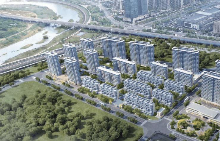 项目占地 8.7 万㎡,建面 24.3 万㎡,容积率 2.0,绿化率 30%,共 17 栋住宅,其中包括 15 栋高层和 2 栋叠墅,总户数 1207 户。