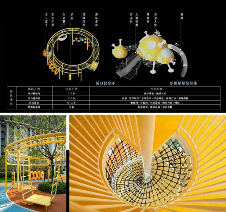 儿童活动空间针对不同年龄段设立了不同的主题模块,打造适龄、有趣、充满创意的儿童活动场地,伴随各年龄段儿童快乐成长,休闲看护亭的设立不仅保证了孩子们的安全,还为家庭成员互相陪伴共享天伦提供了条件。