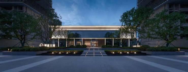 昭示性入口水景对称于中心台阶,结合涌泉叠级呈现,先声夺人强调入口仪式感,落客入口氛围在灯光涌泉的烘托下充分彰显。拾级而上,尊贵的归家之旅也由此展开。