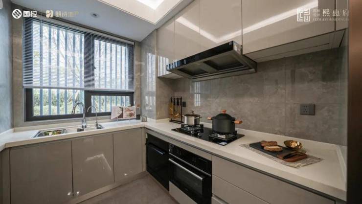 寻常烟火,三尺灶台,厨房,是家里最具烟火气的地方。熙惠府约128㎡朗阔宽境打造朗阔U形厨房,科学流畅动线,在宽绰灵动的空间里,尽情施展美味的魔法。