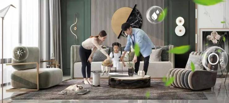 想象未来生活的日常:父母在沙发上看电视,你在浏览最新的新闻资讯,孩子在客厅里奔跑玩耍、拼搭一座乐高城堡,大家同处一个空间,但都沉浸在自己喜欢的事情中,还能随时抽离出来与家人交流,在这里,生活不是割裂的,而是游动起来的。