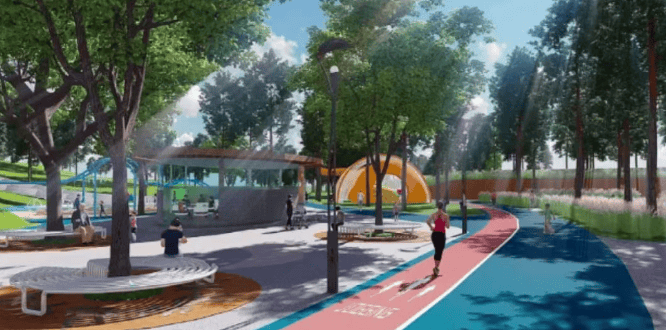 园林景观:精心打造约 4.5 万方的全龄景观园林,整体规划以 “一环两轴九大节点” 为布局。其中,约 616 米的夜光跑道贯穿园林,为业主提供了便捷的健身运动场所;景观双轴近 1.5 万方,营造出归家的仪式感与尊贵感;九大节点各具特色,包括登门望府、府门威仪、花开未央、行云流水、水木年华、梧桐庭深、萌宠乐园、九曲花园、折纸拾光等 ,涵盖了休闲娱乐、亲子互动、邻里交流等多元功能空间。中央水景 “行云流水” 融合雾森系统与折桥设计,再现传统曲水流觞的意境,为业主打造诗意浪漫的园林景观体验。