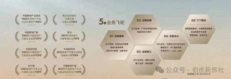 龙湖龙智造集成龙湖集团全业态开发经验,及行业领先的数字科技能力,以“龙湖智道未来城市”为理念,五大业务飞轮协周驱动,致力于成为“智慧营造领航者”