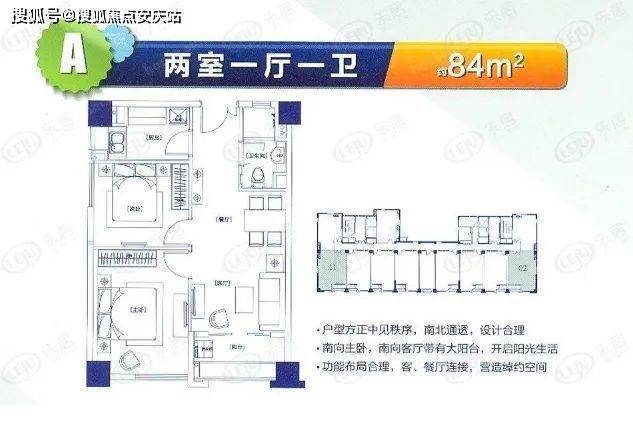 户型三:84㎡打造2房2厅1卫