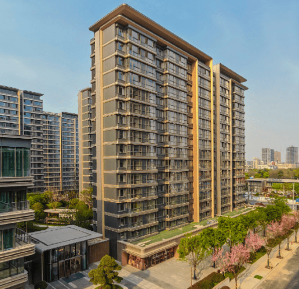 社区指标:总占地约 3.14 万㎡,总建面约 7.85 万㎡;容积率 2.5,绿化率 35%;10 栋小高层,分南北两地块,总户数 604 户(北 436 户、南 168 户);车位比 1:1.47;现代简约铝板 + 玻璃幕墙立面,近零能耗建筑标准