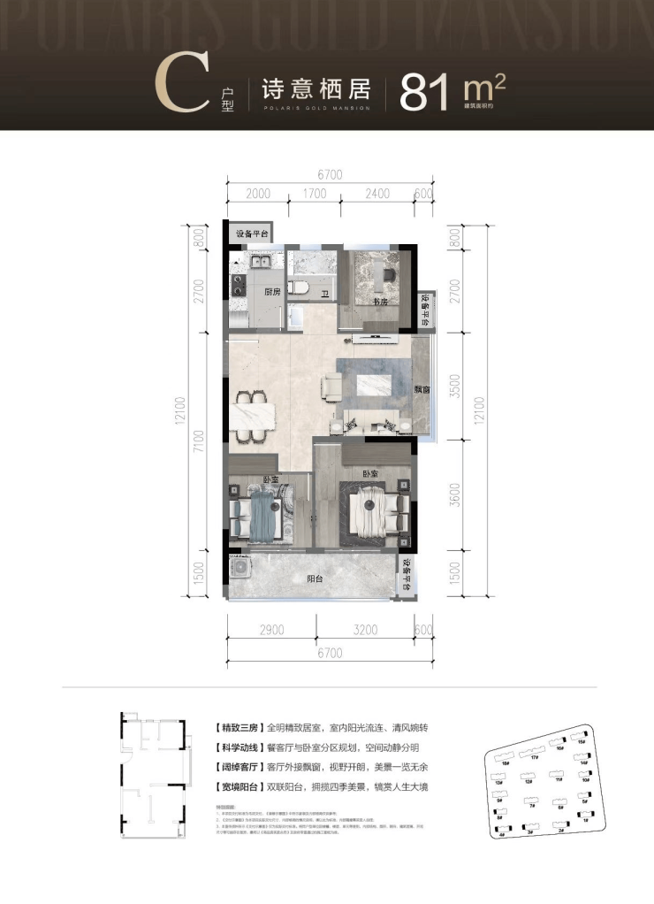 【产品户型】:72平2/2/1,78-81平3/2/1,89平3/2/2,103平4/2/2