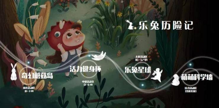 乐兔历险记运用场景化的设计手法,完整再现了可爱快乐的小乐兔在魔幻森林勇敢历险的故事,以主题乐园化的方式打造完整的儿童主题乐园,营造对外太空与未来的探秘和憧憬,给孩子们带来无限的想象。