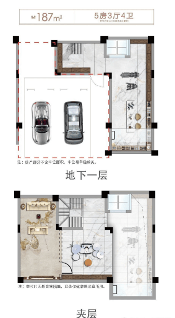 户型面积:排屋:187㎡