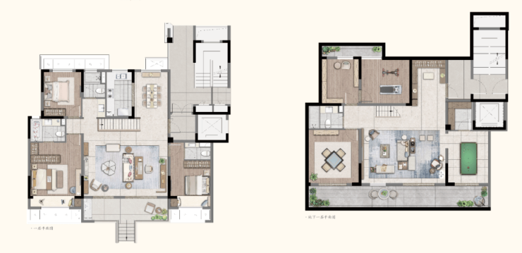 建面约185㎡顶复:洋房里的墅居体验,一楼双层挑空客厅,尺度更加阔绰,二楼一整面的观景阳台、星空露台,诗与远方都唾手可得。
