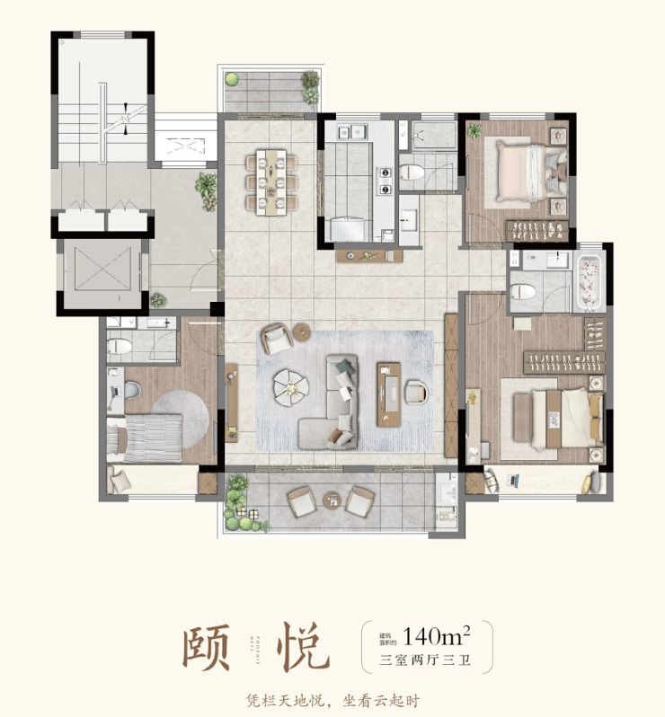 建面约140㎡洋房(三室两厅两卫):约13.7米南向大面宽,约6.5米超大横厅,还有LDK一体、超大景观阳台、南向双套间设计,舒适度直接成倍增加。