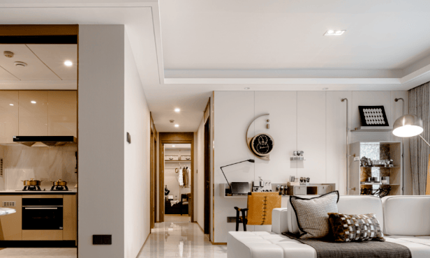 建面约 125-165㎡“阔境平层” 户型:空间尺度开阔,大面宽设计使采光充足,室内明亮通透,功能区划分清晰又相互连通。